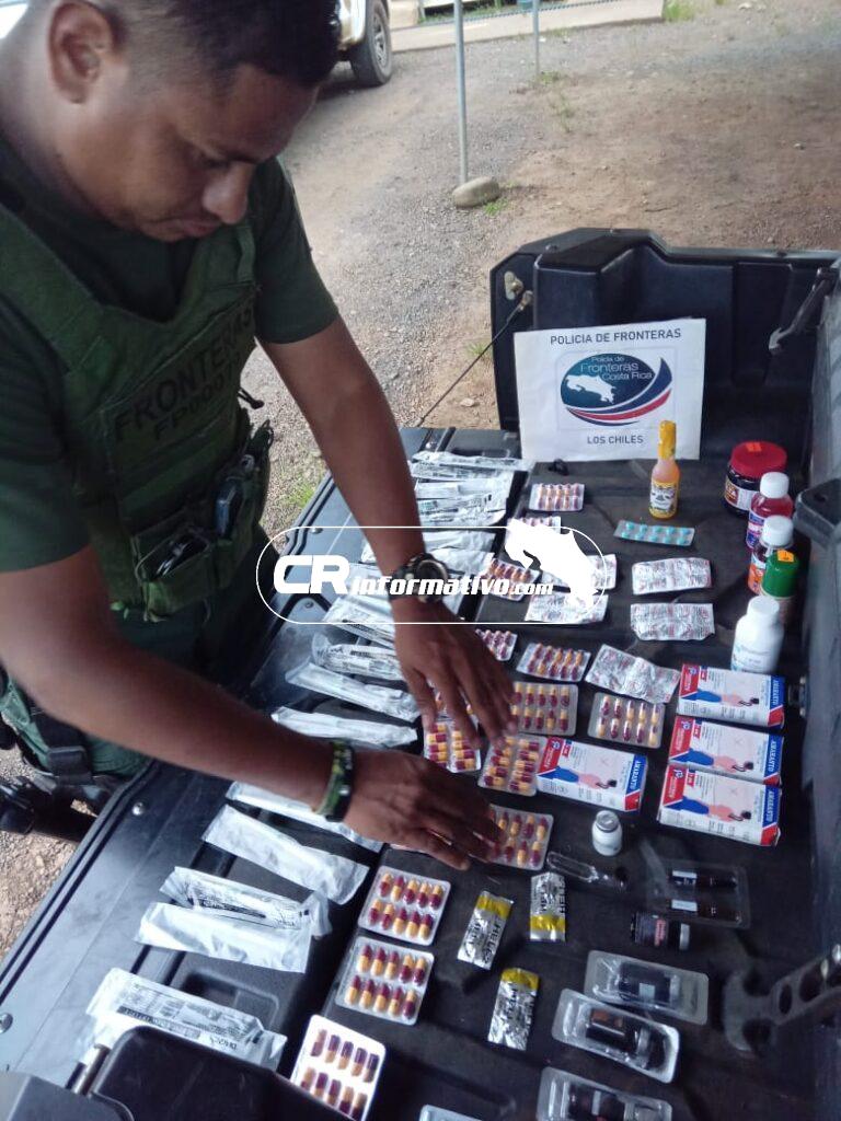Como resultado de los constantes patrullajes que realizan los oficiales de la Policía de Fronteras, destacados en el cantón de Los Chiles, este fin de semana realizaron un decomiso de medicamentos contrabandeados desde Nicaragua.