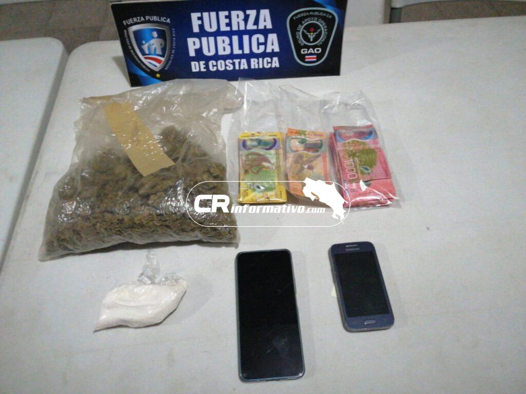 45 gramos de lo que podría ser cocaina, además de 250 mil colones en efectivo.