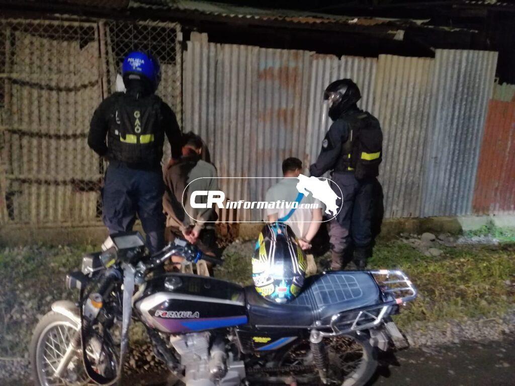 Fue así como los oficiales lograron detener a dos sujetos apellidados Ulate y Barrantes, quienes viajaban a bordo de una motocicleta.