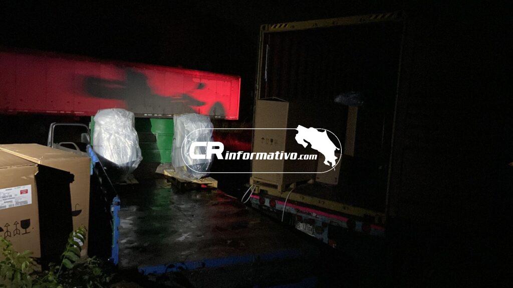 En el sitio se mantenía el contenedor sustraído, el cual transportaba compresores. Oficiales del Organismo de Investigación Judicial se presentaron al lugar para realizar las pesquisas.