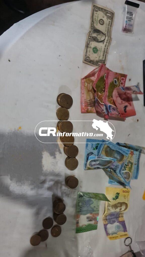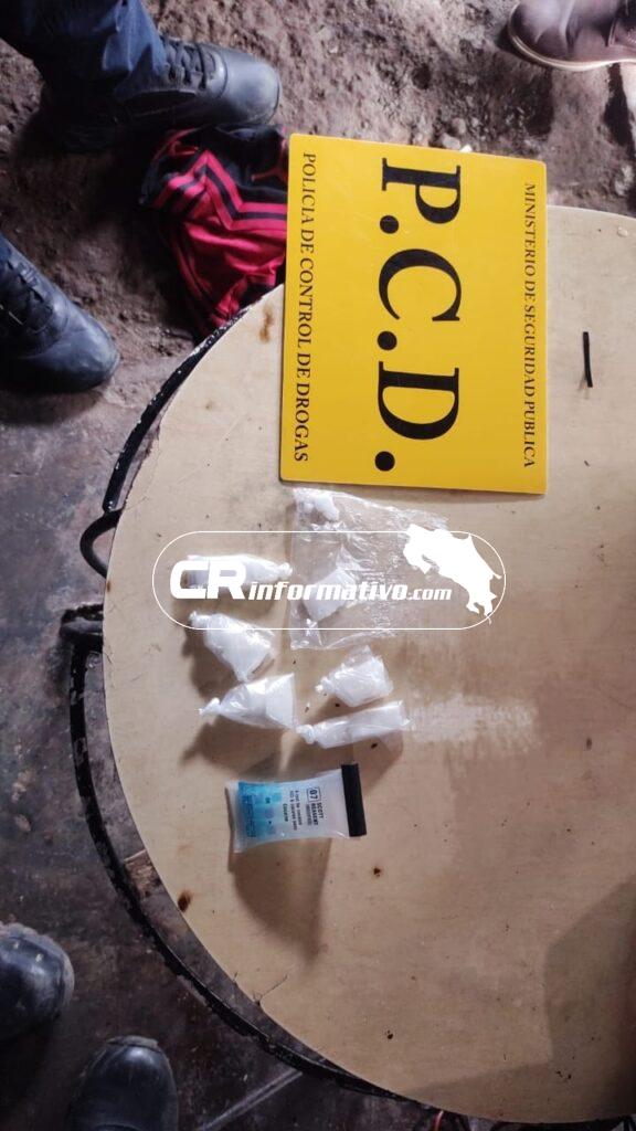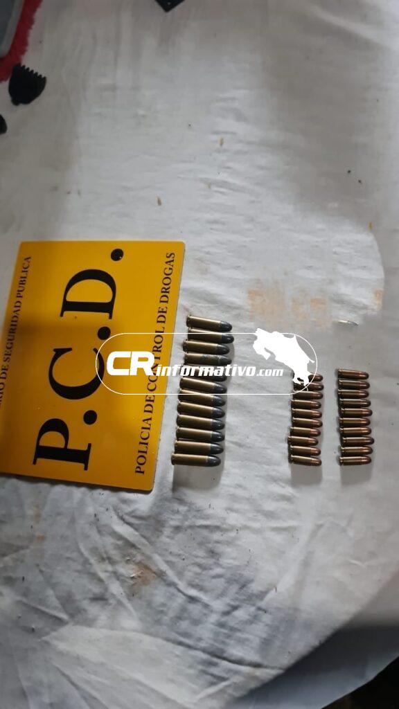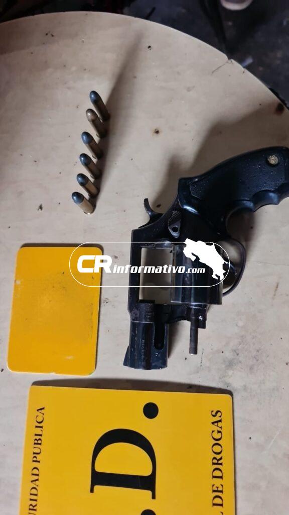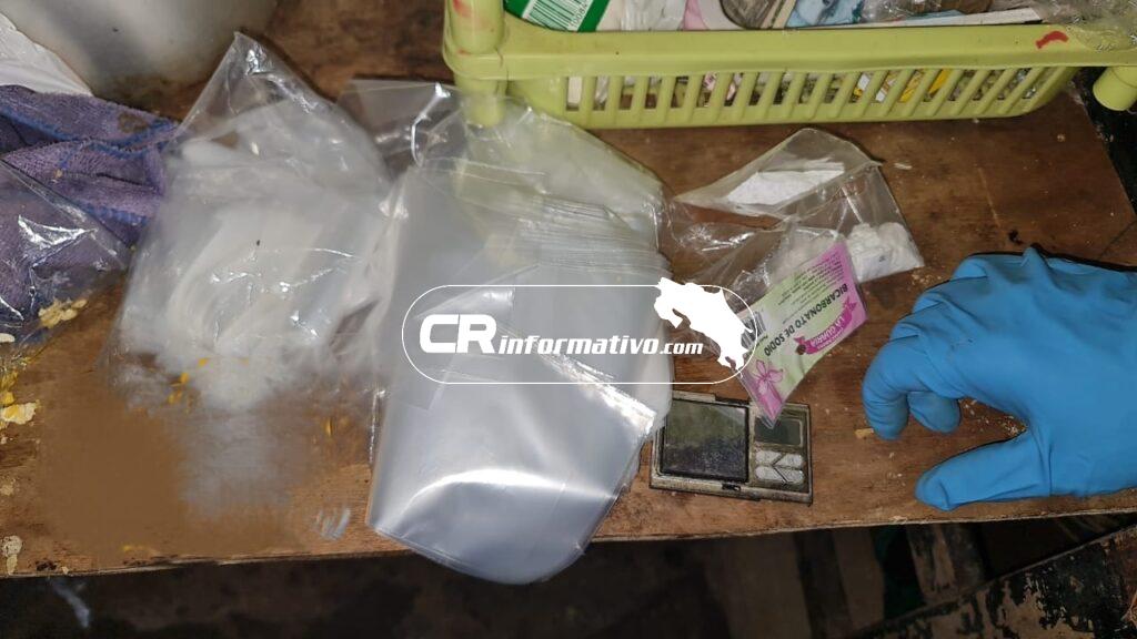 En el sitio se decomisó crack, cocaína, marihuana y varias dosis de Clonazepam. Además, se ubicó un revólver, 54 municiones de distintos calibres y 262 mil colones.