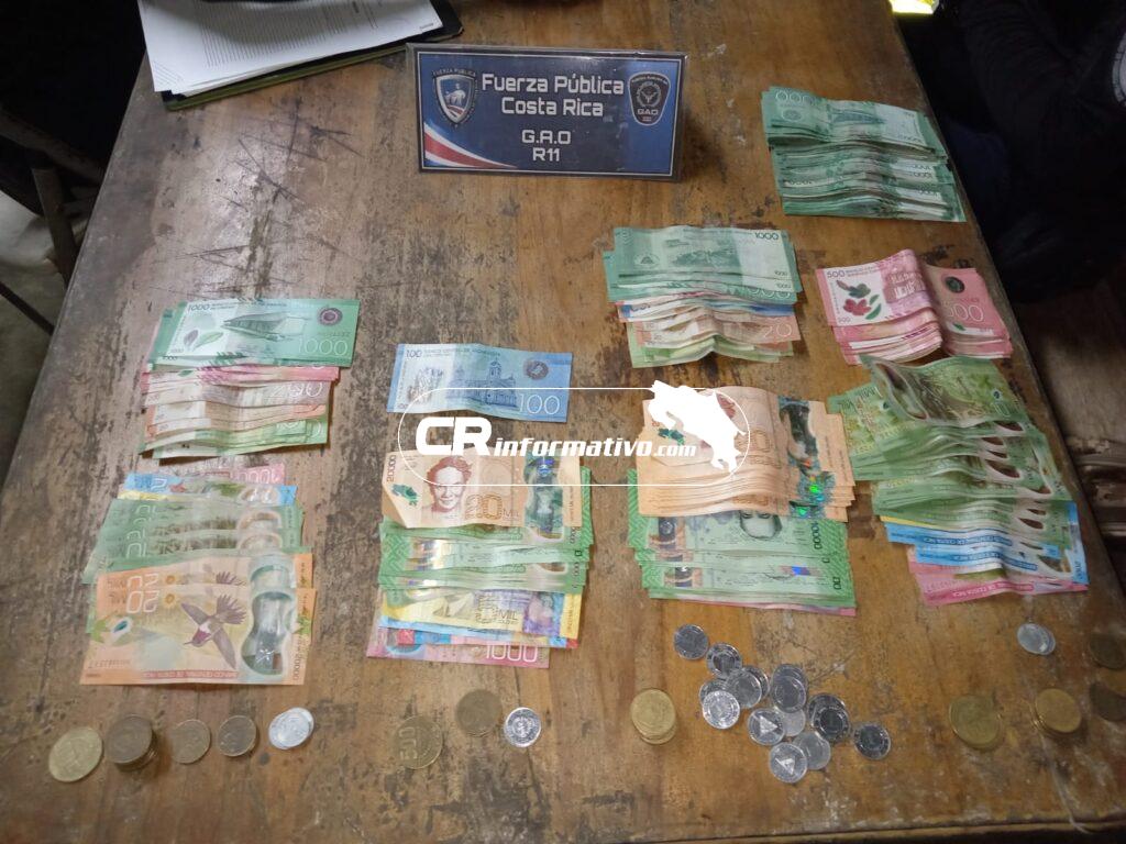 De igual forma estas cuatro personas portaban diferentes sumas de dinero en moneda costarricense y nicaragüense que, en su totalidad, suman 1.878.625 colones y 110.079 córdobas, todo lo cual fue decomisado a fin de quedar a la orden del Ministerio Público.