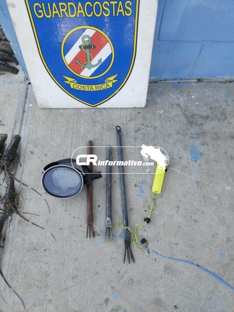 Los oficiales también les encontraron en su poder una linterna y tres arpones de tres picos, todo lo cual les fue decomisado luego de solicitar la dirección funcional del fiscal de turno de Puntarenas.