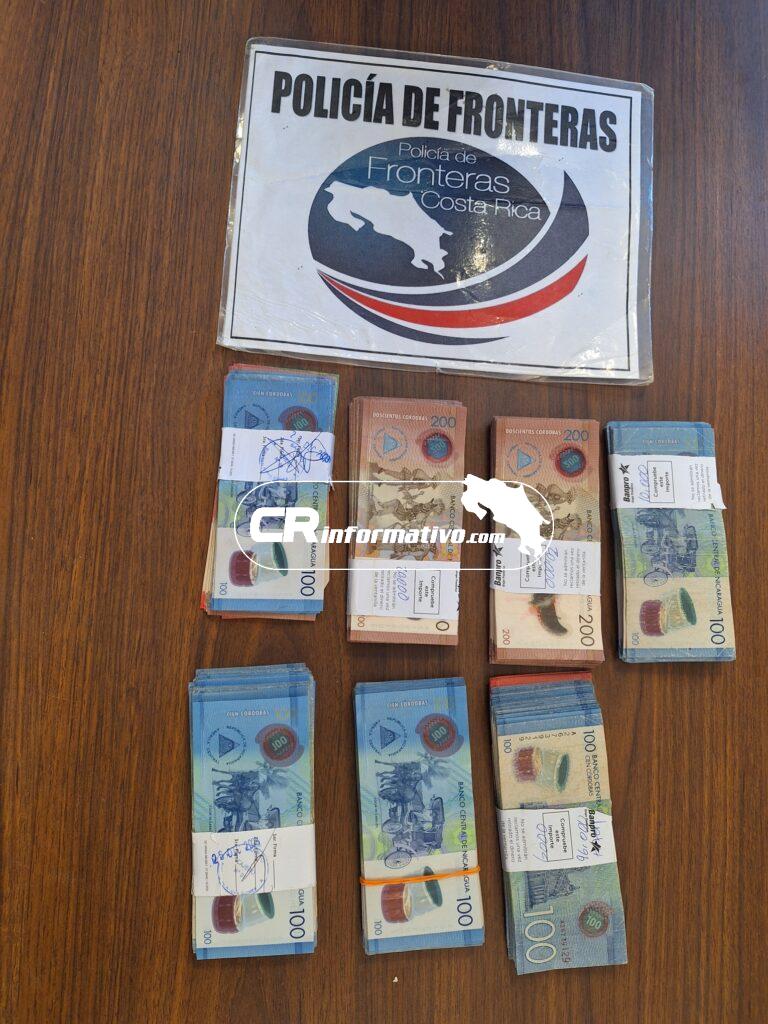 De inmediato los oficiales fronterizos coordinaron con el fiscal de turno de Los Chiles, quien dio la dirección funcional en el sentido de contar el dinero en presencia de un funcionario de Aduanas para posteriormente decomisarlo.