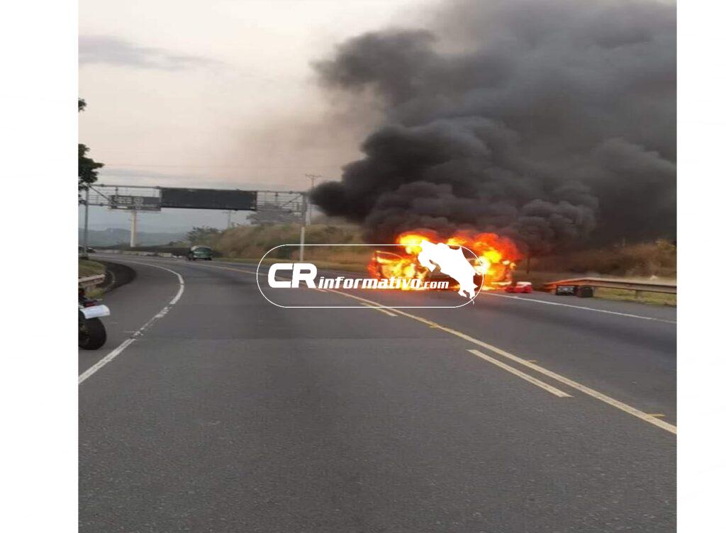 Se ha reportado un incendio que consume un vehículo en la Ruta 27, específicamente antes de llegar al peaje de la entrada de Atenas, Alajuela.