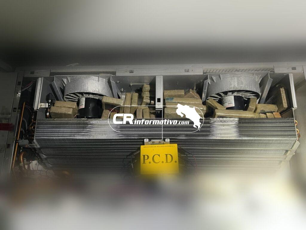 Con el apoyo del personal policial que se mantiene en el sitio, los oficiales de la Policía de Control de Drogas (PCD) procedieron a la inspección del mismo, en donde lograron ubicar 50 paquetes con cocaína que venían ocultos en el sistema de refrigeración.