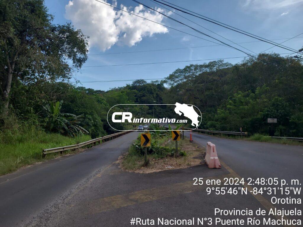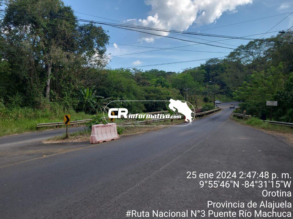 restringirá el paso por el puente sobre el río Machuca (sentido San Mateo-Orotina), ubicado en San