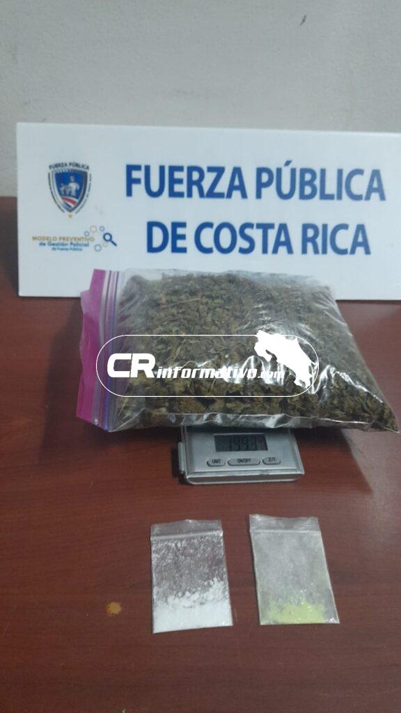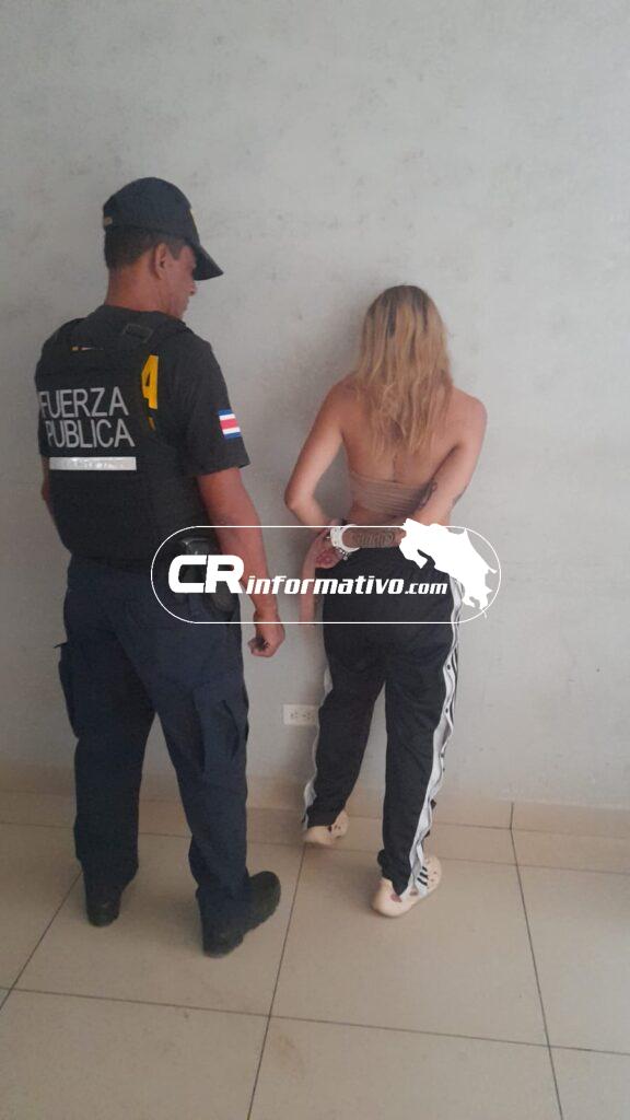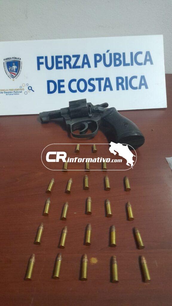 Al llegar a la escena, los policías ubicaron a una mujer de apellido Bolaños, quien portaba un revólver sin ninguna documentación, dinero en efectivo en colones y dólares, así como 199 gramos de marihuana.