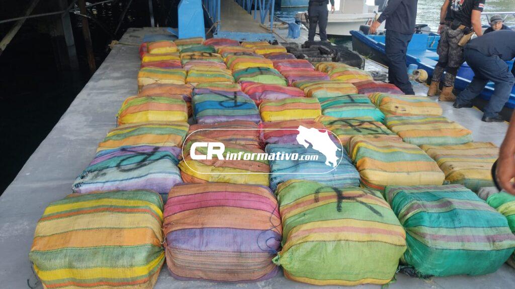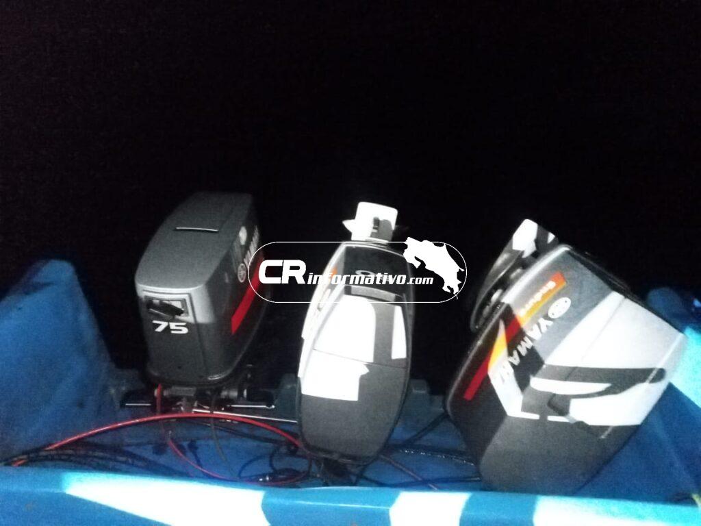 La embarcación de 36 pies de largo, sin nombre ni matrícula, llevaba tres motores fuera de borda, en ella, viajaban dos sujetos que transportaban un cargamento de droga, por lo que las autoridades del Guardacostas coordinaron con la Fiscalía Adjunta contra el Narcotráfico y Delitos Conexos para trasladarla hasta el muelle de Golfito, para que la Policía Control de Drogas (PCD) realizara las diligencias pertinentes.
