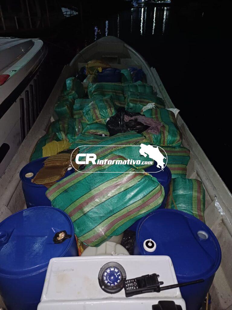 Luego de una intensa persecución por parte de los uniformados y gracias al apoyo aéreo recibido por parte de Estados Unidos, se logró la interdicción de esta embarcación, sin nombre ni matrícula visible y en la cual se halló además de la droga, una importante cantidad de combustible el cual se utilizaría para abastecer la embarcación y lograr su ingreso a aguas costarricenses.