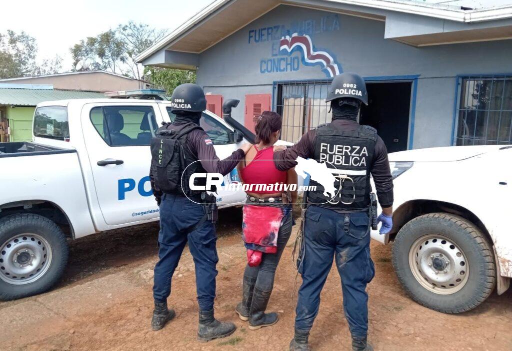 La mujer fue interceptada durante un patrullaje preventivo efectuado en el sector de Calle Vieja, en el distrito de Cutris, cantón de San Carlos, en la frontera norte.