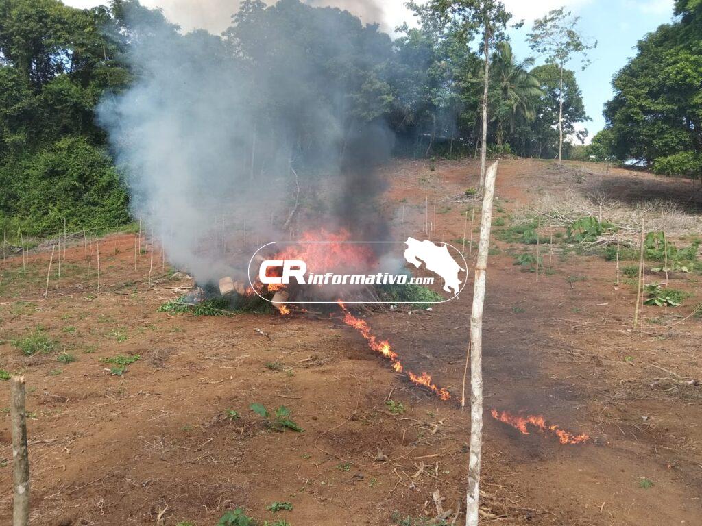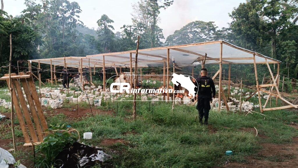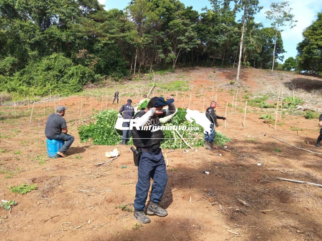 Tras un patrullaje que realizaron el pasado fin de semana oficiales de la Fuerza Pública entre las comunidades de San Vito y el Jardín, ubicadas en el distrito de Cutris, en el cantón de San Carlos, Alajuela, con el fin de verificar una información para ubicar unas tómbolas usadas en la minería ilegal en Crucitas, se halló una propiedad en donde había cuatro plantaciones de marihuana.