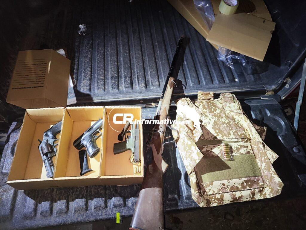 Una vez controlada la situación, observaron varias armas en el sitio, por lo que realizaron las coordinaciones correspondientes con el Organismo de Investigación Judicial (OIJ) y el Ministerio Público, oficiales del OIJ procedieron a levantar los indicios que se ubicaron dentro del inmueble.