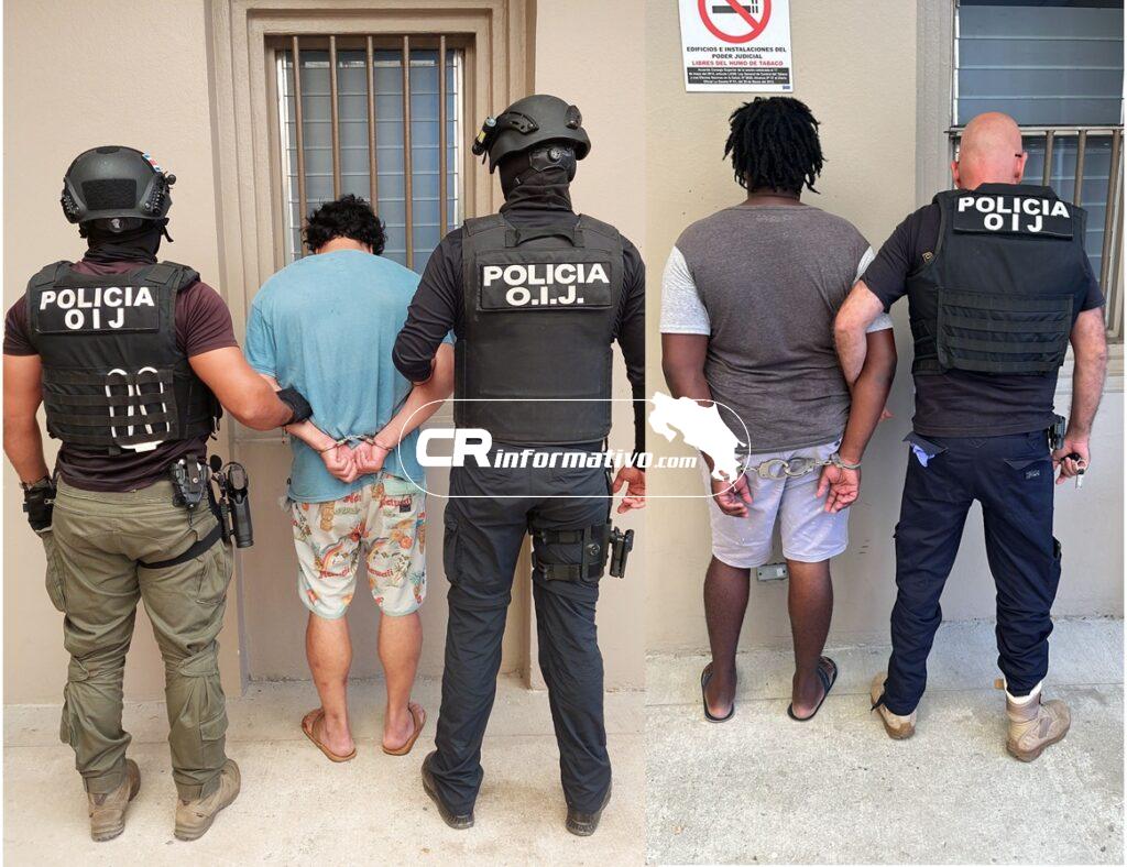 Luego de varias diligencias de investigación, se pudo constatar que en apariencia estos dos individuos estaban cometiendo este delito, por lo que esta mañana se allanaron las viviendas de estos sospechosos, ubicadas en el sector de Puerto Viejo, Cahuita de Talamanca, Limón, donde además de lograr la detención de estos dos sujetos, se procedió con el registro de ambas propiedades, donde se logró ubicar evidencia de importancia para la investigación como fueron varias dosis de aparente marihuana, clorhidrato de cocaína, dinero en efectivo que se presume podría ser producto de la venta de los estupefacientes y munición para arma AR15.