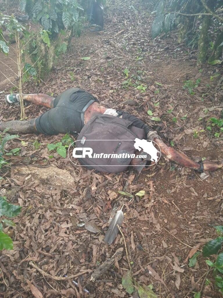 Autoridades de Fuerza Pública y Cruz Roja de Cartago atendieron esta mañana el hallazgo de dos cuerpos sin vida en un cafetal en la localidad de Aquiares de Turrialba.