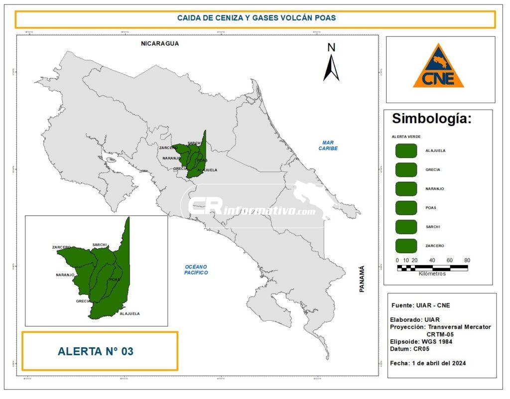 Ante ello se declara ALERTE VERDE para los cantones de: