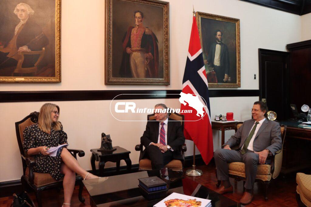 El día de hoy el Canciller de la República, Arnoldo André Tinoco y el ministro de Ambiente y Energía, Franz Tattenbach, sostuvieron una reunión en el Ministerio de Relaciones Exteriores y Culto, con la embajadora de Noruega, Ragnhild Imerslund, la Primera Secretaria para Asuntos Políticos, Line Hammeren y la Enviada Especial en Clima y Bosques, Karine Hertzberg.