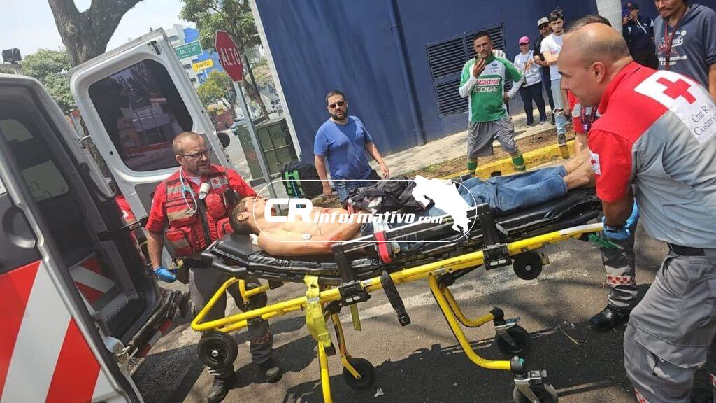 Ante la situación, se llamó a la policía municipal de San José. Al ver la presencia policial, el individuo se encerró en el baño del establecimiento. Los agentes pidieron al hombre que saliera, pero al hacerlo, atacó a los oficiales con el cuchillo que portaba.