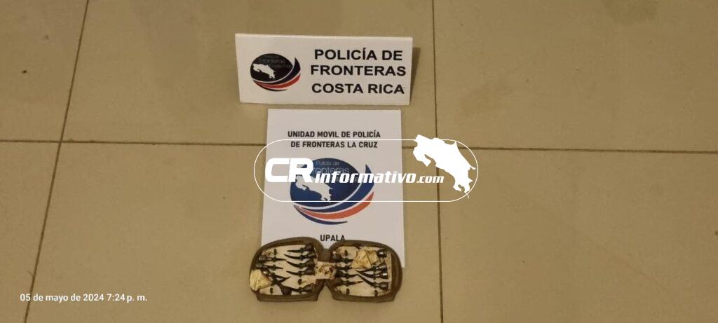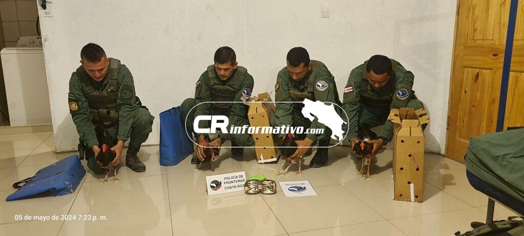 Cabe indicar que el pasado martes, la Policía de Fronteras interceptó a un motociclista en distrito de Yolillal de Upala, quien procedía de la frontera con Nicaragua, el cual tenía en su poder un gallo de pelea y 11 espuelas posiblemente confeccionadas a base de carey.