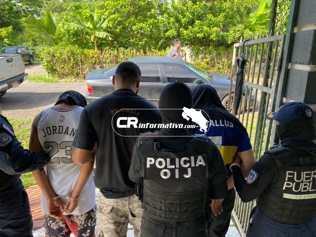 Además, como parte de este operativo efectuado por los agentes judiciales del OIJ de Sarapiquí, tras allanar una de las viviendas de los sospechosos, se logró la detención de dos masculinos, uno de apellido García de 27 años y otro de apellido Mora de 19 años, quienes figuran como sospechosos del delito de Infracción a la Ley de Psicotrópicos, bajo la modalidad de narcomenudeo.