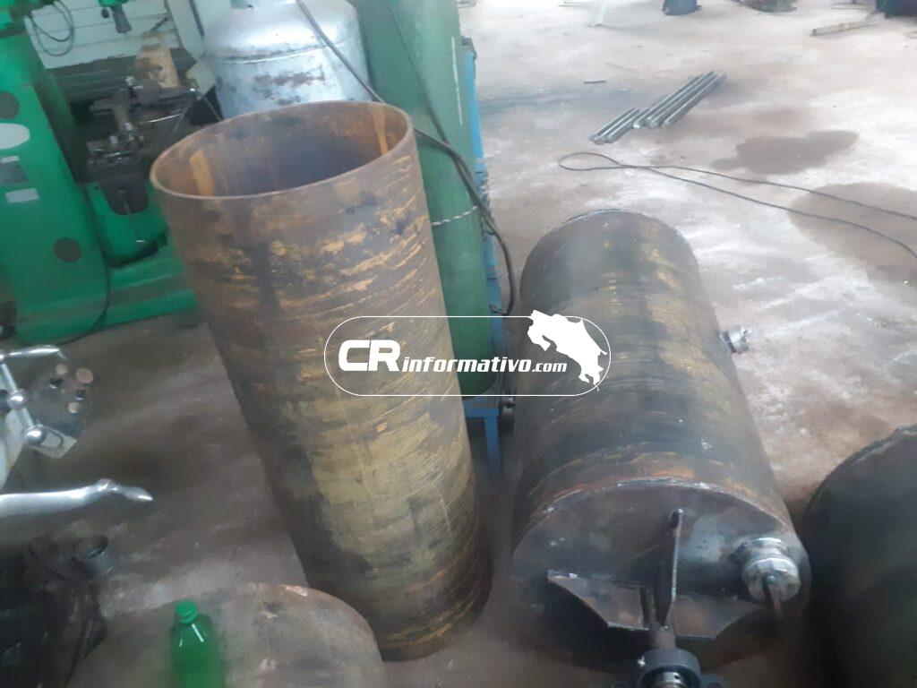 Al ingresar al lugar los oficiales ubicaron tres tómbolas, barras metálicas, tapas de metal, cilindros y muñoneras.