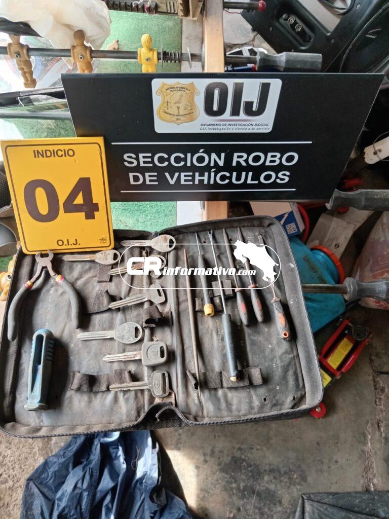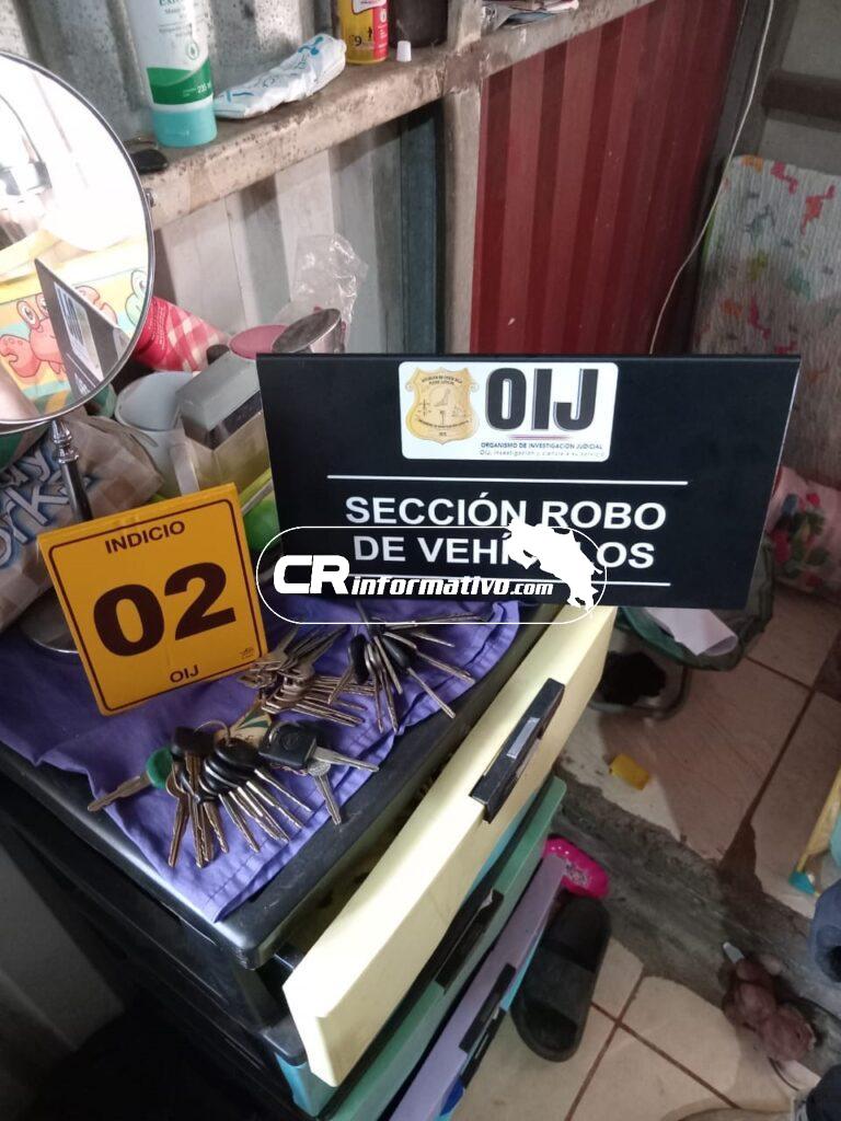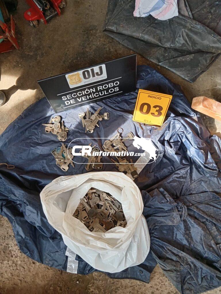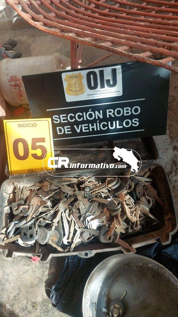 Al ser las 6:00 de esta mañana, los agentes de la Sección de Robo de Vehículos realizaron tres allanamientos a vivienda en los sectores de Sabanilla de Montes de Oca, Esparza y distrito Hospital en San José, donde además de detener a los sospechosos decomisaron gran cantidad de machotes de llaves para carros y herramientas, entre otros indicios de importancia para el caso.