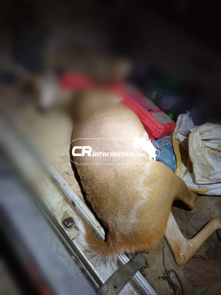 Los oficiales lograron detener un vehículo en donde viajaban tres personas, al realizar una inspección desde afuera, con sus focos lograron alumbrar y observar en el interior de la cabina un venado que resultó estar muerto.