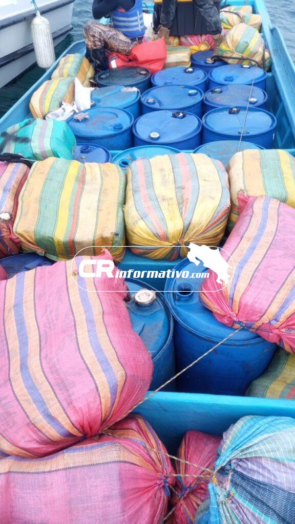 La lancha y sus tripulantes fueron trasladados hasta Puerto Quepos, donde al realizar la revisión de la embarcación se encontraron 68 bultos que contenían 1704 paquetes con aparente marihuana y 10 paquetes de aparente cocaína.