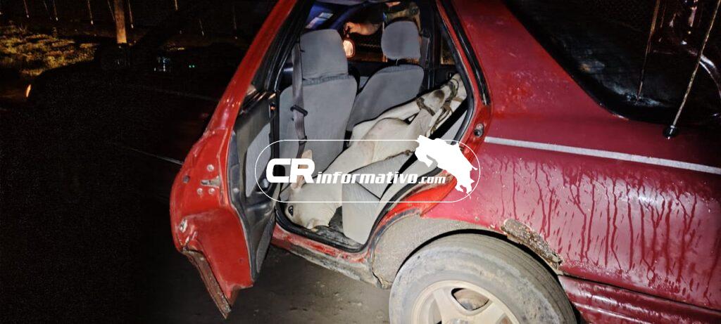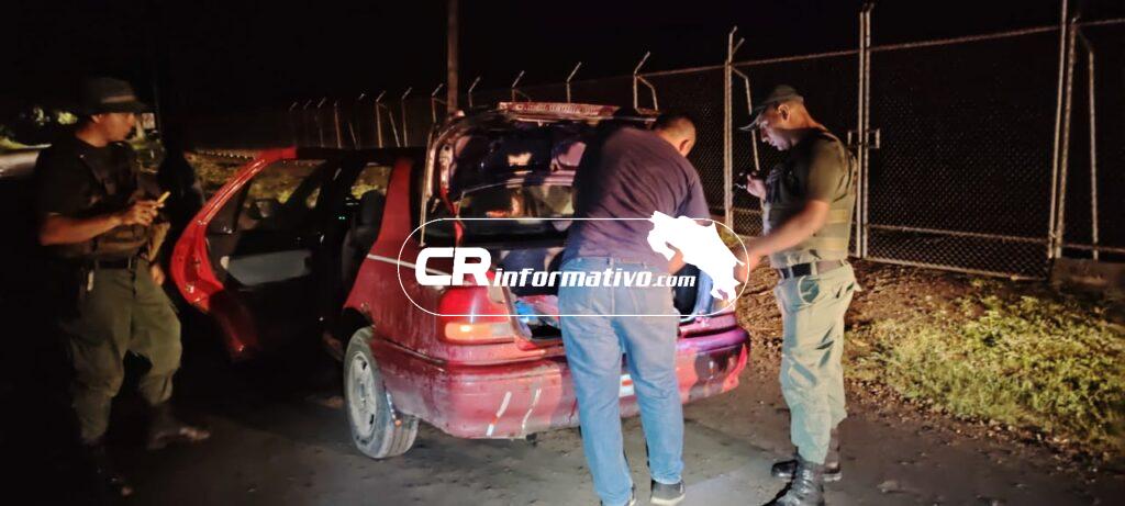 Los policías fronterizos observaron, por las ventanas traseras de un auto que iba pasando, las patas de un vacuno, lo cual les llamó la atención por lo que de inmediato le ordenaron detenerse al conductor, un costarricense de apellido Gorgona, el cual era acompañado por un nicaragüense que dijo apellidarse Suazo.