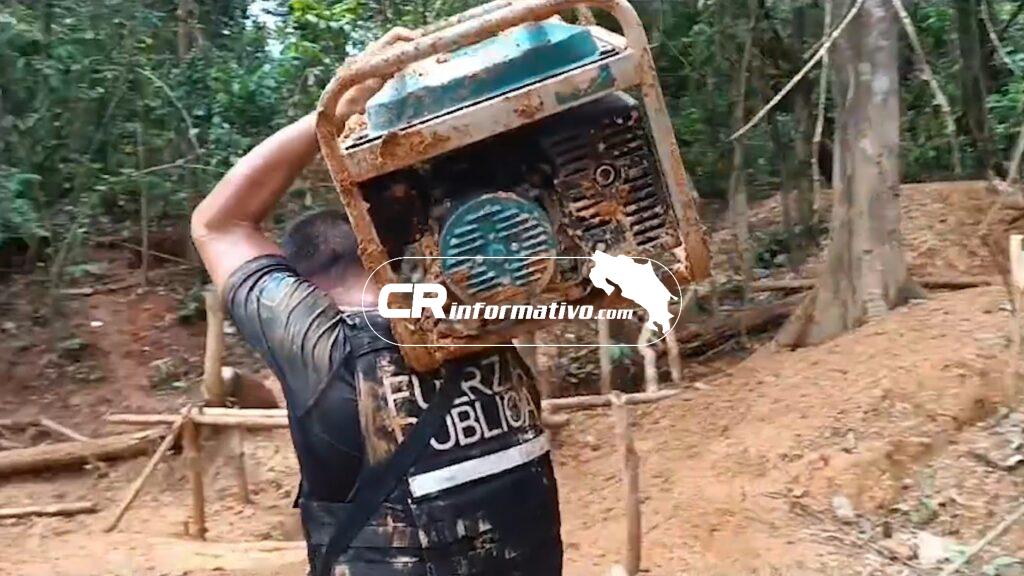 Entre las herramientas y equipos incautados se encuentran 65 metros de mangueras, dos plantas para generar energía eléctrica, una máquina procesadora de sedimento de las llamadas tómbolas, cuatro rotamartillos, un motor y seis barras de hierro.