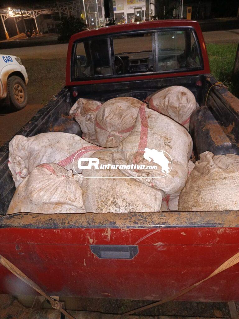 El automotor era de tipo pick-up, iba conducido por un hombre de apellido Rodríguez, y lo acompañaba una mujer apellidada Rojas, quienes transportaban 17 sacos con aparente material minero y tres piezas de aparente oro.