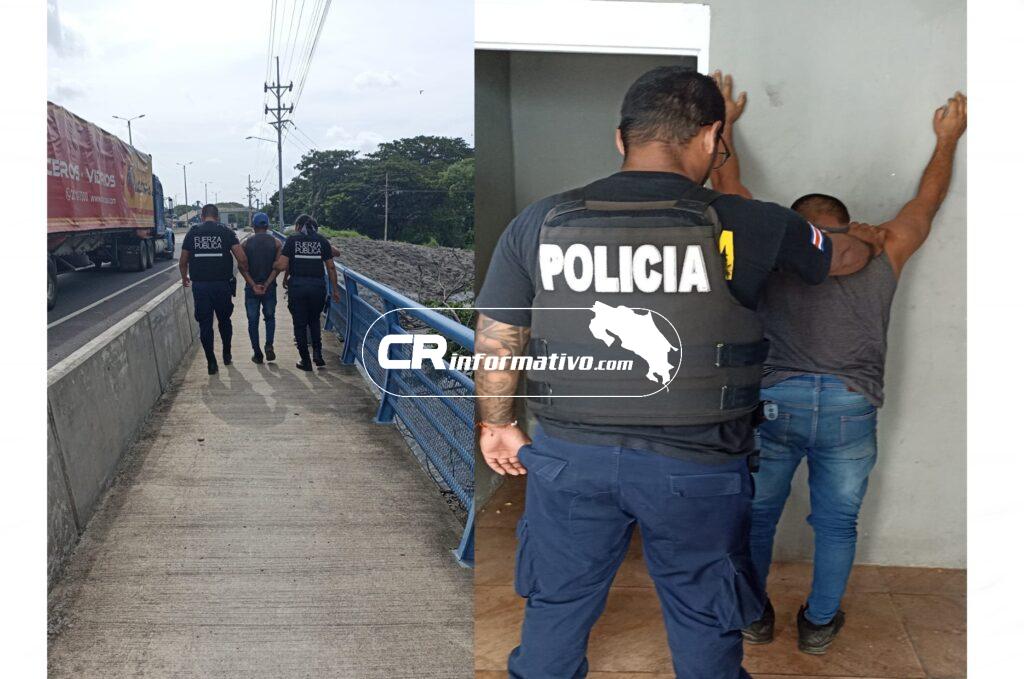 Los oficiales de la Fuerza Pública interceptaron al sujeto en Cañas, Guanacaste, cuando caminaba en vía pública por el puente sobre el Río Cañas.