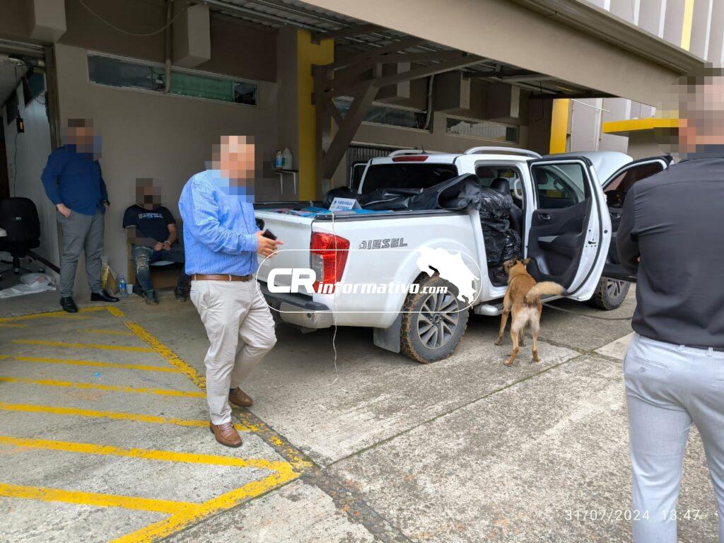 El subdirector regional, Mauricio Guevara, explicó que los sospechosos tras avistar a las autoridades se devolvieron a alta velocidad, a lo que las autoridades reaccionaron para darles persecución y luego detenerlos. Tras la detención se dio el hallazgo de la droga en uno de los vehículos, así como de dinero en efectivo en una suma cercana a los 2 millones de colones.