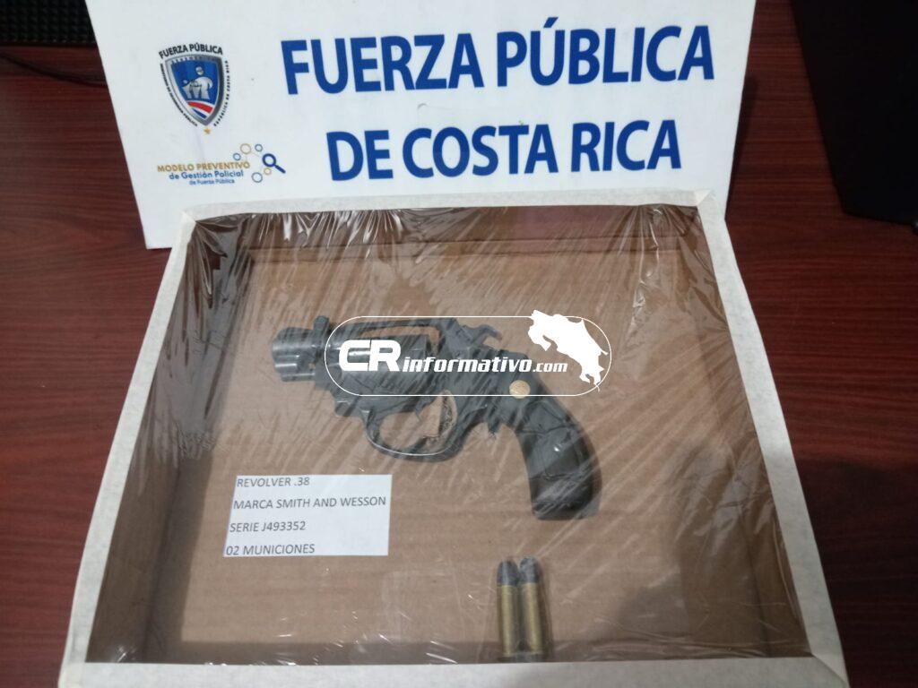 En San Antonio, Ciruelas, se realizó el decomiso de un arma de fuego a un hombre de apellido Mojica, quedando a la orden de la Fiscalía de Alajuela por el delito de portación ilícita de arma de fuego.