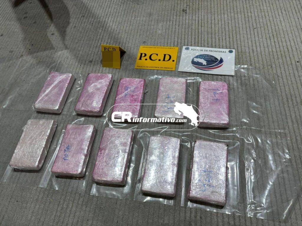 Es por ello que la Policía de Fronteras procedió a coordinar con la Fiscalía de Golfito, bajo cuya dirección funcional la Policía de Control de Drogas procedió a abrir dicho compartimento, dentro del cual encontraron 10 paquetes de aproximadamente un kilogramo de cocaína cada uno.