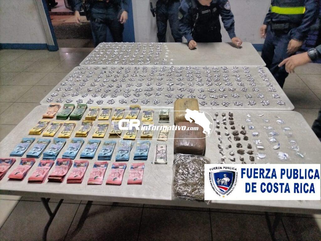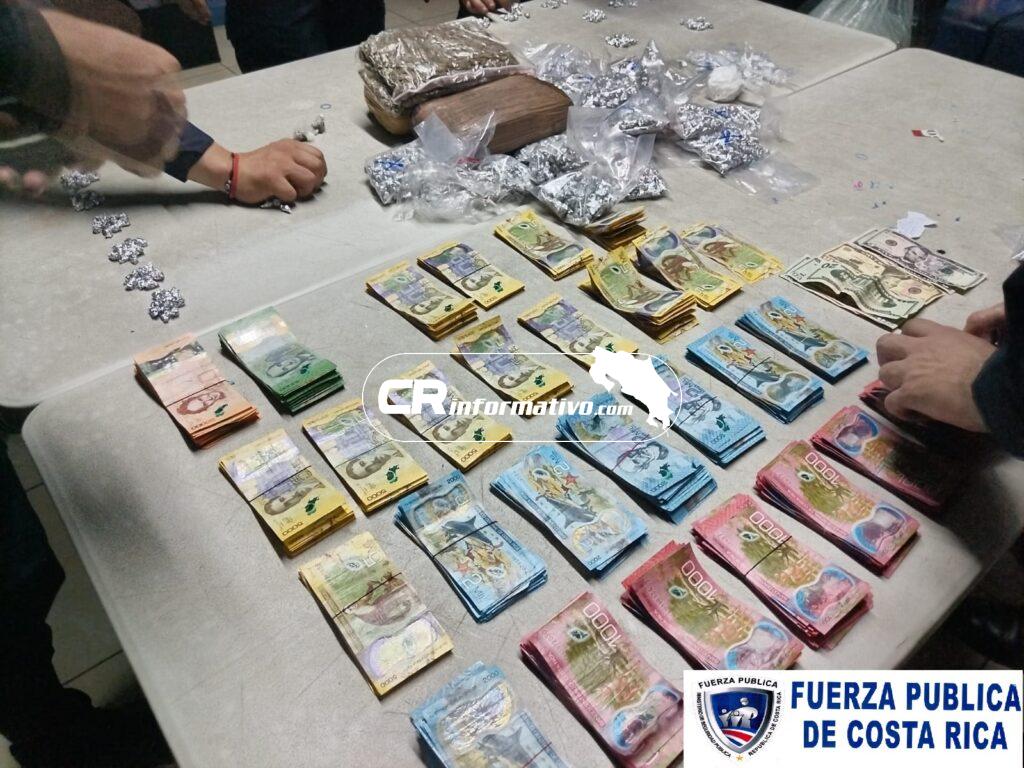 Aunque algunos de los presuntos delincuentes fueron detenidos, otros lograron huir, pero dejaron abandonados en los búnkeres dinero y drogas, lo que le permitió a la Fuerza Pública sacar de las calles de dichas comunidades cerca de cuatro millones de colones en efectivo, además de 2.500 dosis de diversas drogas como crack y marihuana.