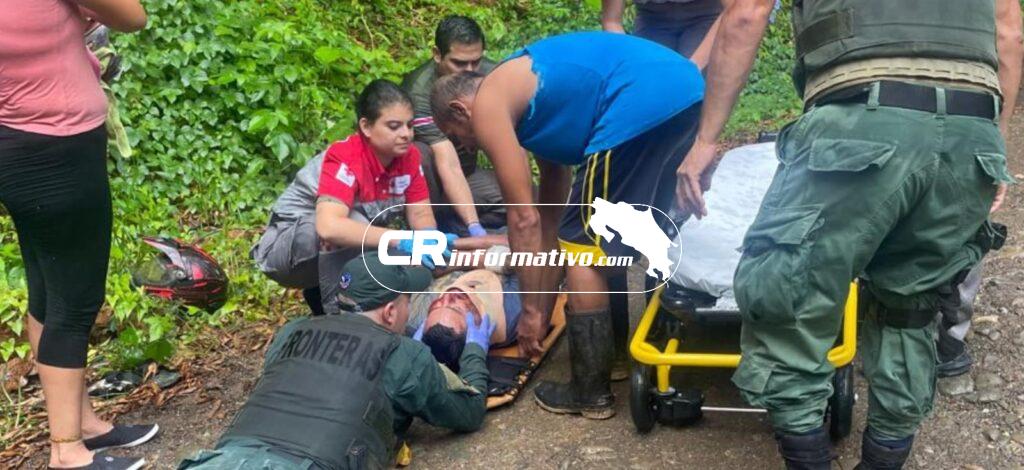Por tal motivo, de inmediato se desplazó una móvil con miembros de la Policía de Fronteras y del SINAC para auxiliar al herido, al cual encontraron junto a una motocicleta.