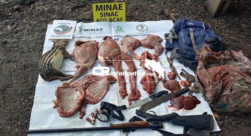 Policía de Fronteras y SINAC capturan a sospechosos de cazar un venado cola blanca y un tepezcuintle en un área protegida