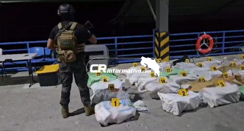 El cumplimiento tuvo lugar el martes a 15 millas náuticas de la entrada del Golfo Dulce, durante un patrullaje realizado por oficiales del Grupo de Apoyo de Operaciones Especiales del Guardacostas, quienes encontraron una radioboya a la cual estaban amarrados con una cuerda varios bultos con aparente droga.