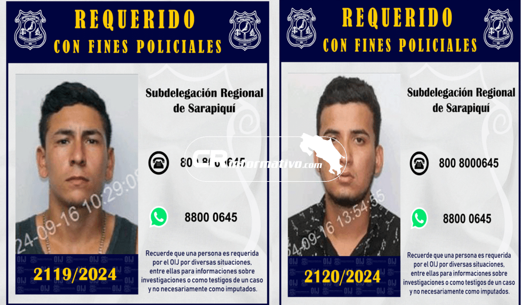 Cualquier información que pueda brindar para lograr la detención de estos sujetos es indispensable que se comunique al teléfono 800-8000645 o al WhatsApp 8800-0645 del Centro de Información Confidencial.