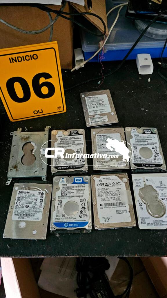 Como parte del registro y secuestro en el inmueble, se decomisaron teléfonos celulares, computadoras y varios dispositivos de almacenamiento externo que serán sometidos al respectivo análisis forense.