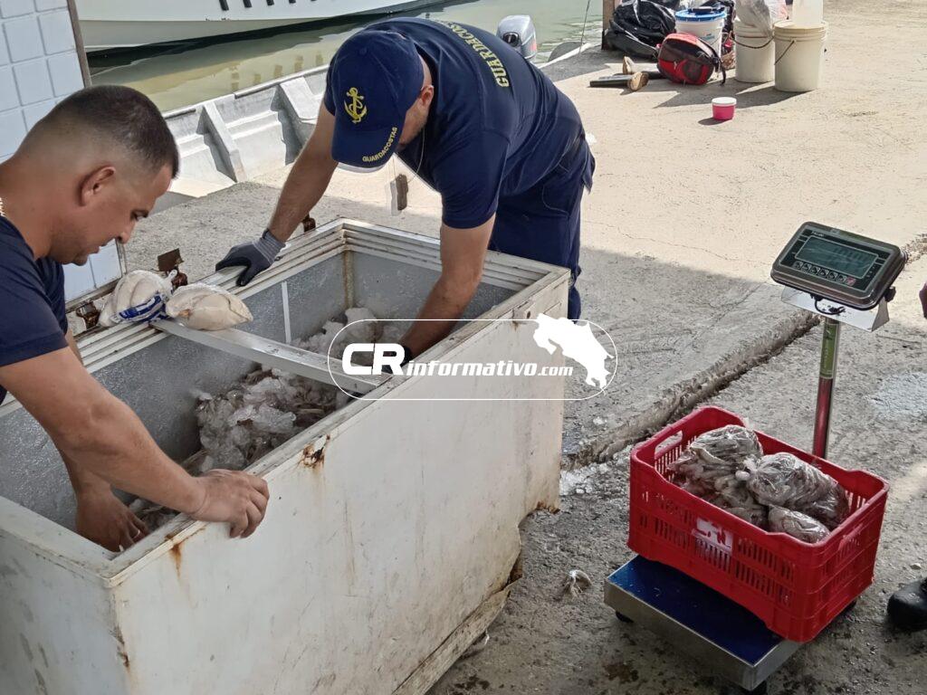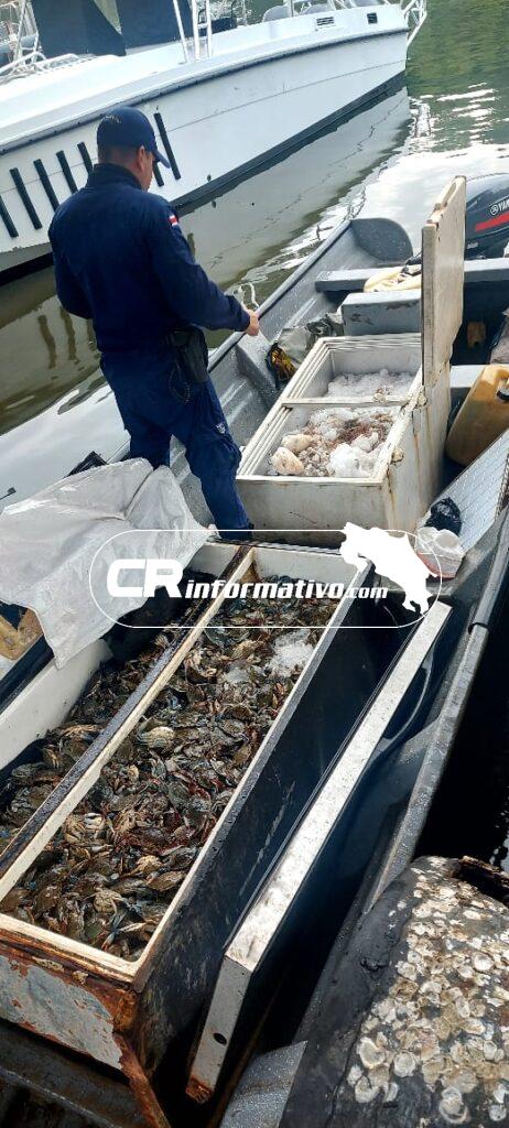 La embarcacion poseía dos hieleras, con 196 kilos de jaibas, 109 kilos entre pescado corvina y róbalo y192 kilos de camarón blanco.