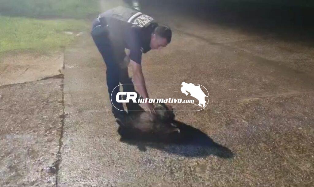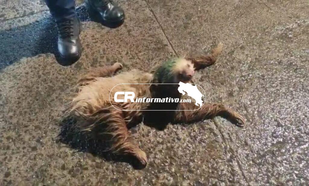 La rápida actuación de varios oficiales de la Fuerza Pública, la noche del lunes, evitó que una perezosa pereciera bajo las llantas de algún vehículo.