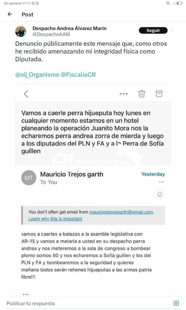 La diputada Andrea Álvarez ha hecho pública una grave denuncia a través de su cuenta en X (anteriormente Twitter), en la que revela haber sido objeto de múltiples amenazas que atentan contra su integridad física. En su contundente mensaje, Álvarez explicó que las advertencias intimidatorias están relacionadas con su trabajo como legisladora, señalando la vulnerabilidad que enfrentan los funcionarios públicos en el contexto actual.