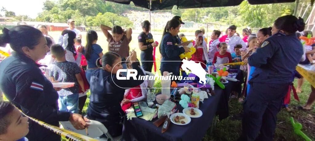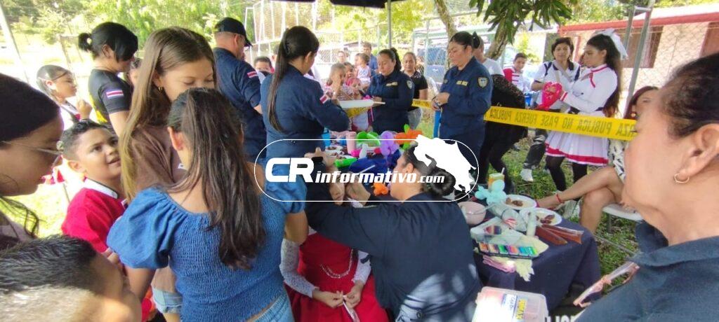 La Fuerza Pública, siempre solidaria con las poblaciones donde se encuentra ubicada, participó en un acto de homenaje a esta valiente comunidad, en la que el personal de Programas Policiales Preventivos de la Delegación Policial de Corredores organizó diversas actividades, especialmente para la niñez.