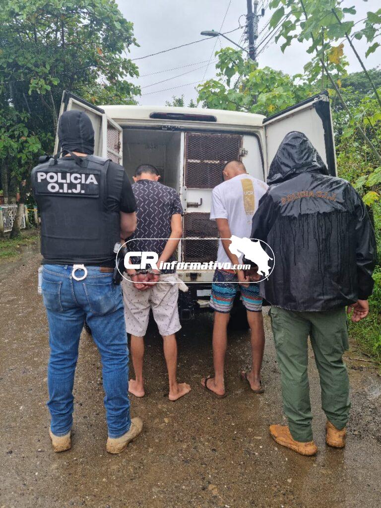 Agentes destacados en la Subdelegación Regional de Nicoya del Organismo de Investigación Judicial (OIJ) realizaron esta mañana al ser las 5:00 a.m. tres allanamientos en Jicaral y uno en Liberia, en los cuales se logró la detención de cuatro sujetos de edades comprendidas entre los 19 y 36 años, ya que figuran como sospechosos de los aparentes delitos de Privación de libertad, Agresión y otros, en perjuicio de tres personas.
