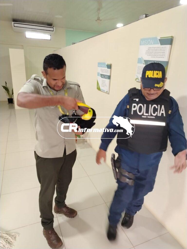 De acuerdo con lo reportado por los oficiales destacados en la delegación del distrito de San José de Upala, ellos iban hacia la frontera con Nicaragua a realizar un patrullaje, cuando observaron un tucán en medio de la calle.