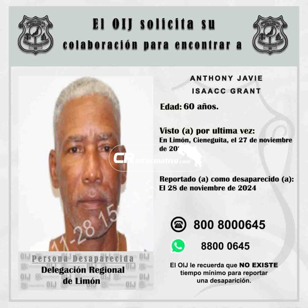 El otro tripulante desaparecido fue identificado como Pedro José Angel Flores Duarte, de 75 años de edad, vecino de la provincia de Limón al igual que los hermanos Isaacc Grant.