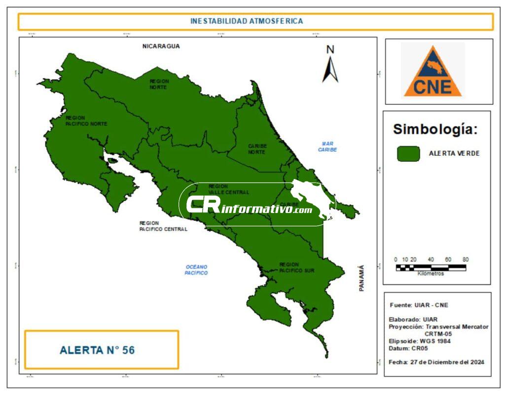 La Comisión Nacional de Prevención de Riesgos y Atención de Emergencia (CNE) ha declarado Alerta Verde en todo el territorio nacional debido a las lluvias previstas para los próximos días, con un aumento significativo esperado para el domingo 29 y lunes 30 de diciembre.