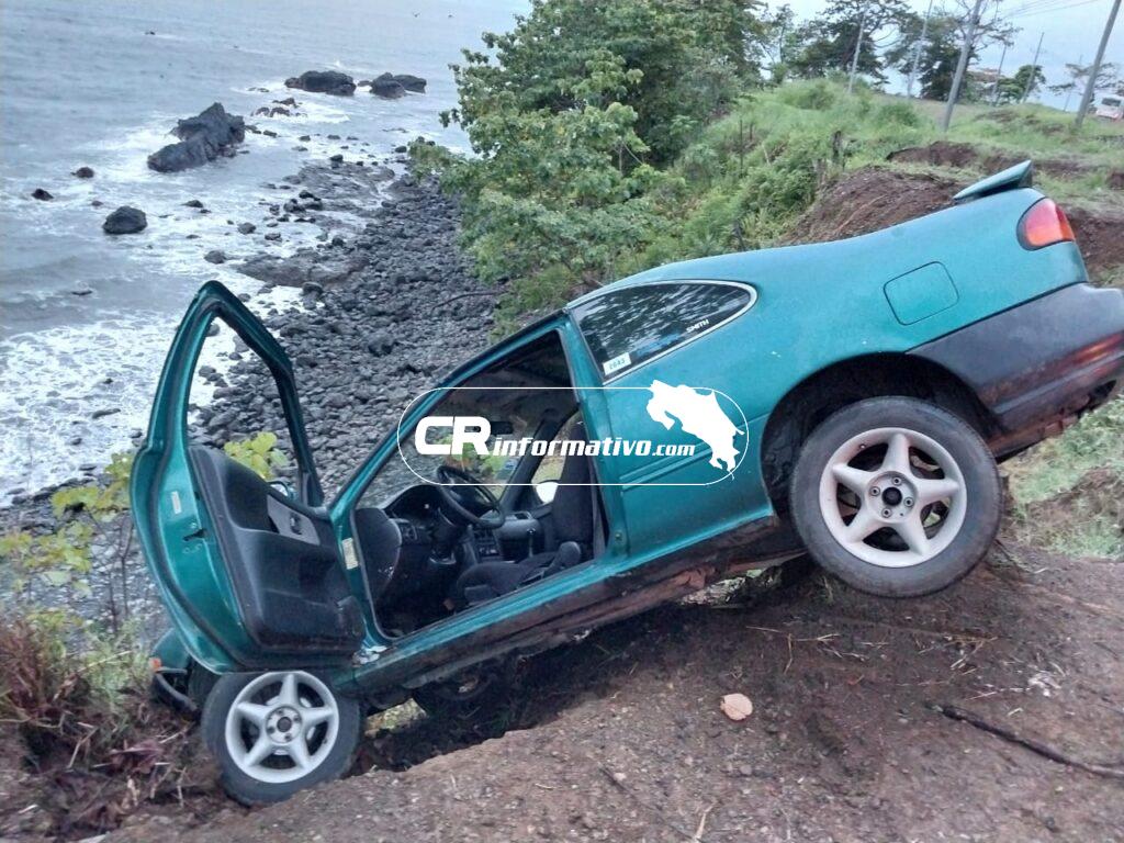 En la Ruta 34, conocida como la Costanera Sur, un vehículo se salió de la vía en las cercanías del Mirador de Jacó, según informes preliminares. El incidente estuvo a punto de convertirse en una tragedia, ya que el automóvil quedó al borde de una pendiente que conduce hacia la playa.